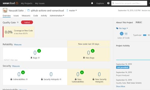 概要 Github Actions(2019/09/15現在のβ版)と SonarCloud を連携させたサンプルを作成する。 TSLint + Jest実行後に Github Actions上でSonarCloud Scan を実行して、SonarCloud側に保存する。 参考URL github.com github.com 参考過去記事 kakkoyakakko2.…